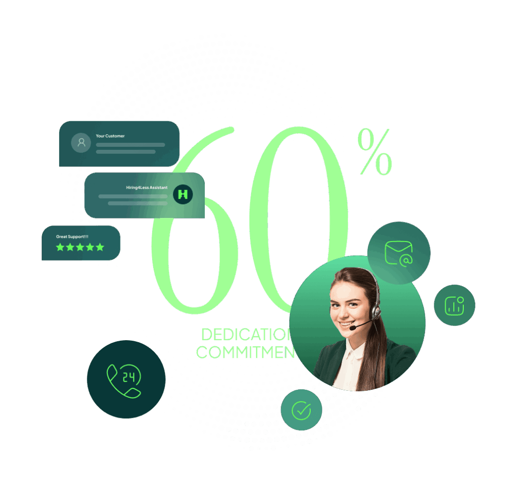Your assistant is exclusively dedicated to your business, ensuring your work is prioritized. We’ve learned that having one employee work full-time exclusively for you, and not for anyone else, improves dedication by 60%. They understand that their livelihood depends on your business, ensuring they are fully committed and motivated to contribute to your success.